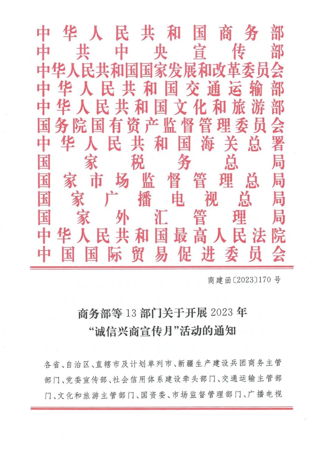 關(guān)于開(kāi)展2023年“誠(chéng)信興商宣傳月”活動(dòng)的通知