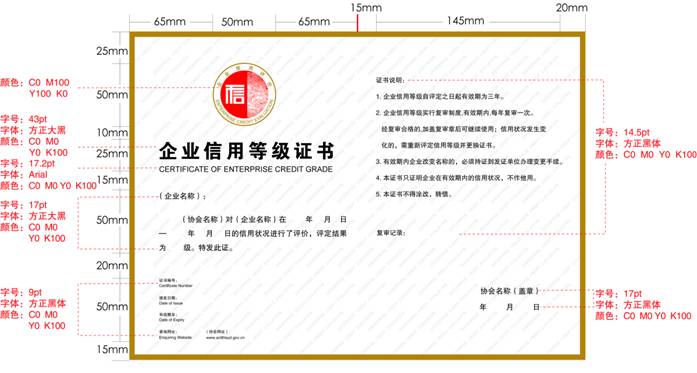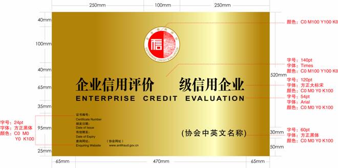 按照《關于加強行業(yè)信用評價試點管理工作的通知》(整規(guī)辦發(fā)[2007]3號)要求,行業(yè)信用評價證書和標牌要使用統(tǒng)一的樣式和編號方法?,F(xiàn)將全國整頓和規(guī)范市場經(jīng)濟秩序領導小組辦公室和國務院國有資產(chǎn)監(jiān)督管理委員會統(tǒng)一設計的信用評價的證書、標牌式樣予以公布: