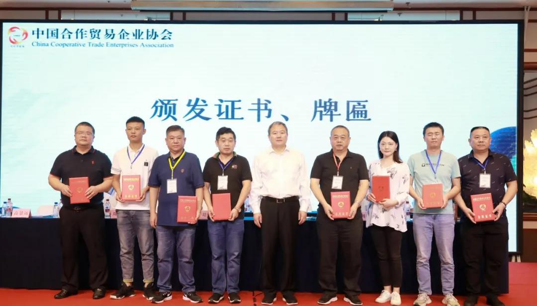 中國合作貿(mào)易企業(yè)協(xié)會(huì)會(huì)長郝彥領(lǐng)等領(lǐng)導(dǎo)為新加入?yún)f(xié)會(huì)的會(huì)員單位代表頒發(fā)了證書,為新設(shè)立的商業(yè)文化分會(huì)和安全食品委員會(huì)頒發(fā)牌匾和負(fù)責(zé)人證書,為調(diào)整的分支機(jī)構(gòu)負(fù)責(zé)人頒發(fā)證書,并為評(píng)為“合作貿(mào)易品牌基地”稱號(hào)的單位代表頒發(fā)了牌匾。