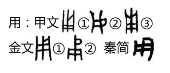 我們今天所見的“用”字,其直接來源是秦簡字形,而秦簡字形則是傳承自甲骨文。