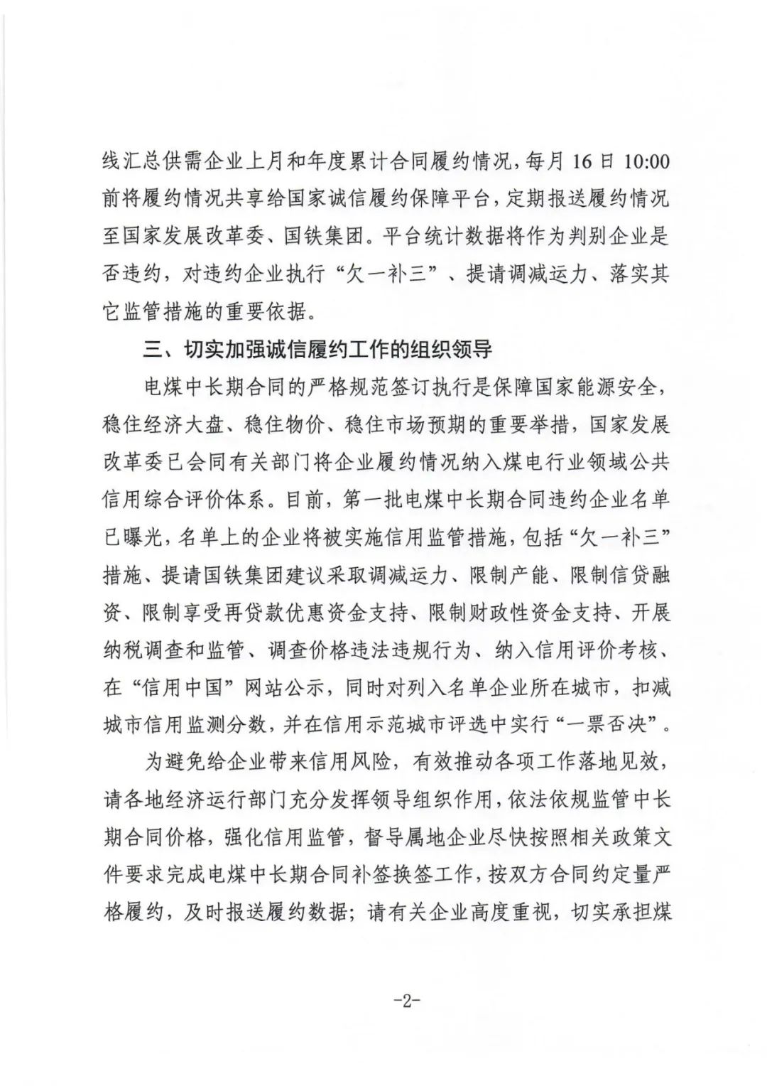 《通知》指出,各地經(jīng)濟運行部門充分發(fā)揮領(lǐng)導(dǎo)組織作用,依法依規(guī)監(jiān)管中長期合同價格,強化信用監(jiān)管,督導(dǎo)屬地企業(yè)盡快按照相關(guān)政策文件要求完成電煤中長期合同補簽換簽工作,按雙方合同約定量嚴(yán)格履約,及時報送履約數(shù)據(jù)。