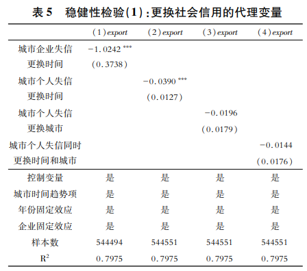 由此提出假說(shuō)5:城市異地失信人比例提高會(huì)降低企業(yè)出口水平。