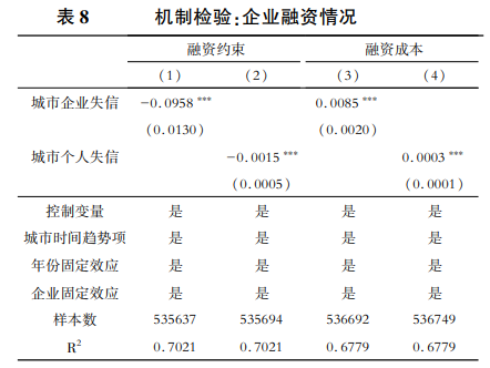 (1)社會(huì)信用環(huán)境對(duì)企業(yè)融資的影響