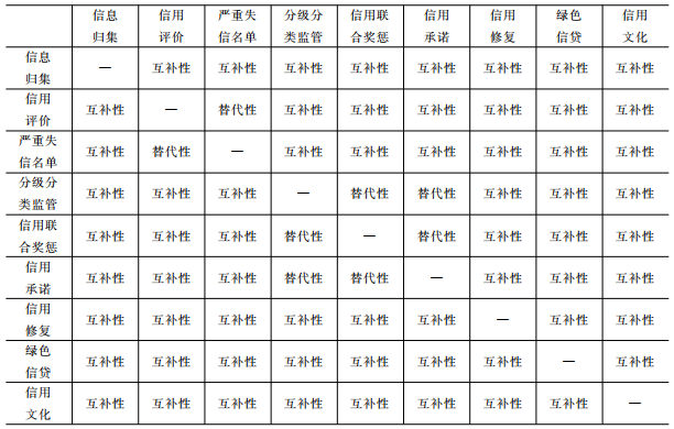 2、綠色信用監(jiān)管制度的互補(bǔ)性。信用監(jiān)管正式規(guī)則將導(dǎo)致一系列非正式規(guī)則的產(chǎn)生,它們補(bǔ)充正式規(guī)則留下的制度空隙,共同提升綠色信用監(jiān)管制度在市場(chǎng)和社會(huì)領(lǐng)域的影響力。市場(chǎng)體系中典型的互補(bǔ)性案例包括激勵(lì)與約束之間的互補(bǔ)性、激勵(lì)制度與法制環(huán)境的互補(bǔ)性、社會(huì)文化規(guī)范之間的互補(bǔ)性、經(jīng)濟(jì)與政府組織之間的互補(bǔ)性等。從綠色信用監(jiān)管制度實(shí)踐看,信用信息歸集制度、信用修復(fù)制度、綠色信貸制度與公共信用評(píng)價(jià)、嚴(yán)重失信名單等數(shù)據(jù)管理制度和信用承諾、信用分級(jí)分類監(jiān)管、信用聯(lián)合獎(jiǎng)懲等數(shù)據(jù)應(yīng)用制度的關(guān)系均為互補(bǔ)性,說明這三種制度在綠色信用監(jiān)管制度建設(shè)中的重要性。信用文化與關(guān)聯(lián)制度具有高度互補(bǔ)性,表明信用文化對(duì)綠色信用監(jiān)管制度具有基礎(chǔ)支撐作用。信用數(shù)據(jù)管理制度、數(shù)據(jù)應(yīng)用制度與其他制度高度互補(bǔ),需要在實(shí)踐中不斷完善。制度的互補(bǔ)性容許出現(xiàn)多樣化的制度安排,因此,對(duì)于互補(bǔ)性制度要注意配合,把握實(shí)施力度。此外,互補(bǔ)性越強(qiáng)的子制度,對(duì)推進(jìn)綠色信用監(jiān)管制度建設(shè)的價(jià)值越高,越應(yīng)優(yōu)先排入制度安排序列。當(dāng)綠色信用監(jiān)管制度存在互補(bǔ)性時(shí),要加強(qiáng)制度的匹配性分析,通過耦合強(qiáng)化提升制度績(jī)效。如果互補(bǔ)性制度中,存在前提性制度,必須首先創(chuàng)設(shè)前提性制度,加強(qiáng)前提與后續(xù)過程的互補(bǔ),確保制度的健康運(yùn)行。