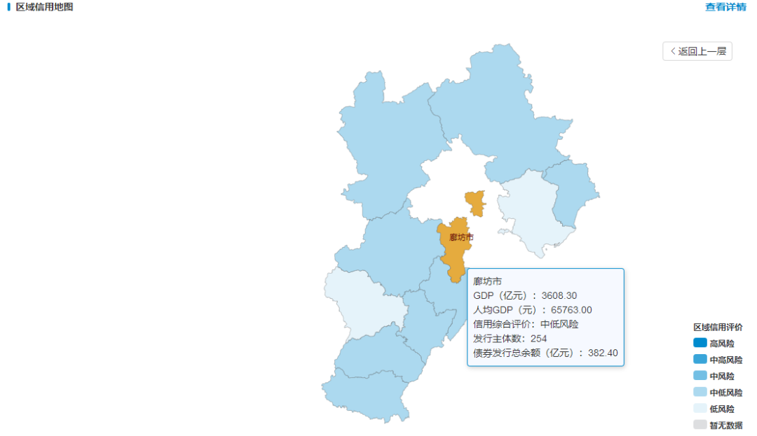 根據(jù)國家公共信用和地理空間信息中心的城市信用狀況監(jiān)測結(jié)果,2024年6月,廊坊市綜合信用指數(shù)在全國261個地級城市中排名第3位,位列河北省第一?;谛氯A債鑒區(qū)域經(jīng)濟3類20項指標(biāo)及評價模型,新華信用對廊坊市和區(qū)域內(nèi)城市經(jīng)濟情況及綜合信用風(fēng)險評估得出,2023年度廊坊市區(qū)域經(jīng)濟綜合信用風(fēng)險等級為中低風(fēng)險。