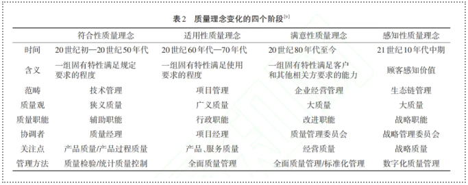 企業(yè)的產(chǎn)品質(zhì)量觀是隨著社會(huì)發(fā)展而不斷演變的。它是社會(huì)經(jīng)濟(jì)發(fā)展的產(chǎn)物,是市場(chǎng)競(jìng)爭(zhēng)的結(jié)果,是從賣方市場(chǎng)到買方市場(chǎng)轉(zhuǎn)變過(guò)程中客戶意識(shí)的覺(jué)醒,也是從以產(chǎn)品為中心到以客戶為中心的經(jīng)營(yíng)管理意識(shí)的轉(zhuǎn)變。產(chǎn)品質(zhì)量觀(理念)給企業(yè)質(zhì)量管理指明了改進(jìn)的方向。表2為質(zhì)量理念變化的四個(gè)階段。
