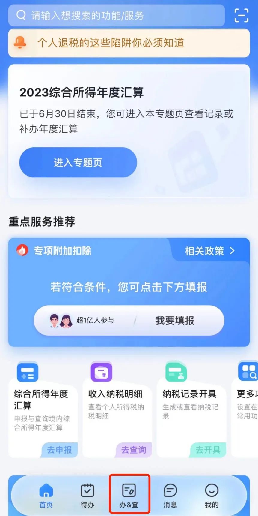 1.登錄個(gè)人所得稅app,進(jìn)入【辦&查】頁(yè)面。
