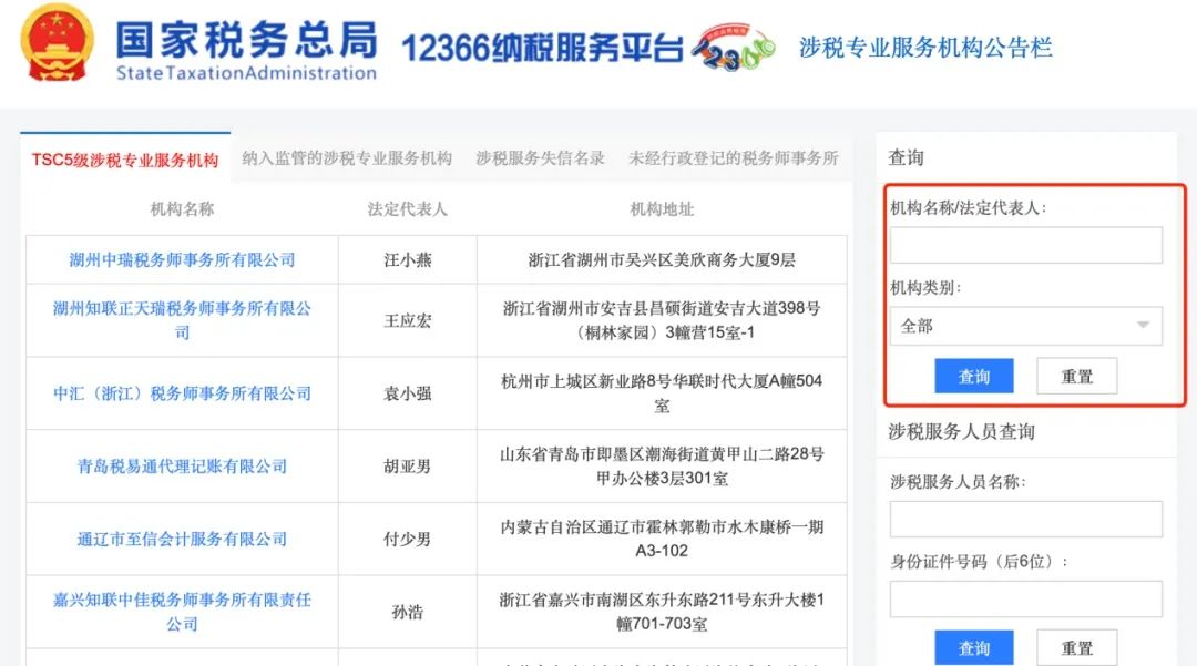 涉稅專(zhuān)業(yè)服務(wù)機(jī)構(gòu)信用信息查詢(xún)