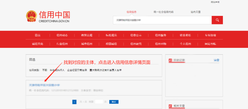 二、在查詢結(jié)果里找到對應(yīng)的主體,點擊進入信用信息詳情頁面。