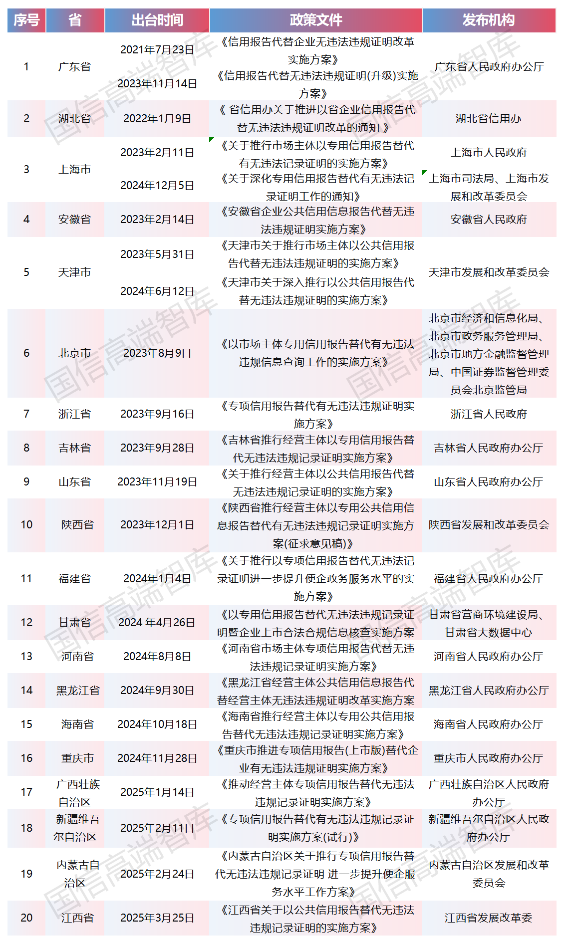 各省信用報告代替無違法違規(guī)證明具體做法
