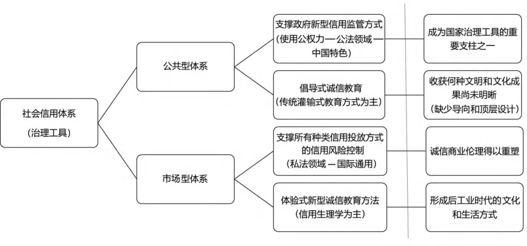 回溯社會(huì)信用體系22年的發(fā)展歷程,其未在頂層設(shè)計(jì)中“預(yù)留”使體系功能延伸到海外的“接口”,導(dǎo)致社會(huì)信用體系建設(shè)工作存在國內(nèi)治理效能與國際信控作用之間的結(jié)構(gòu)性失衡。出現(xiàn)這種問題,在很大程度上,是因公共型體系與市場型體系的協(xié)同發(fā)展不足所致,反映出在相關(guān)理論建設(shè)和制度創(chuàng)新能力方面存在系統(tǒng)性短板。