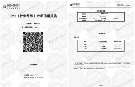 圖5-2 浙江省企業(yè)和社會組織專項信用報告示意圖