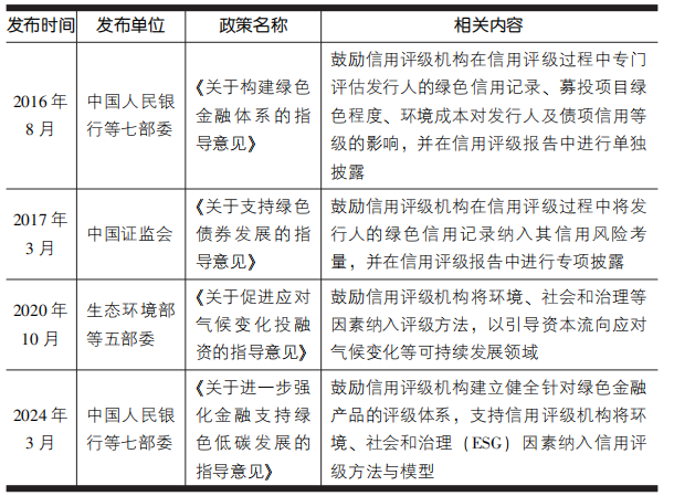 表:中國(guó)支持信用評(píng)級(jí)中納入ESG考量政策梳理