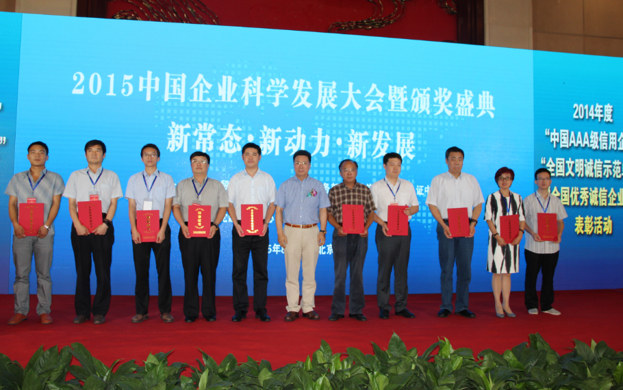 2015年8月16日,由中國(guó)合作貿(mào)易企業(yè)協(xié)會(huì)、商務(wù)部研究院信用評(píng)級(jí)與認(rèn)證中心、中國(guó)企業(yè)改革與發(fā)展研究會(huì)等單位聯(lián)合主辦的“2015中國(guó)企業(yè)科學(xué)發(fā)展大會(huì)暨頒獎(jiǎng)盛典”在京隆重舉行。國(guó)務(wù)院研究室、國(guó)務(wù)院國(guó)資委、國(guó)家發(fā)改委、商務(wù)部、工信部、聯(lián)合國(guó)工發(fā)組織等有關(guān)領(lǐng)導(dǎo)、知名專家學(xué)者,以及中國(guó)企業(yè)信用100強(qiáng)代表和誠(chéng)信企業(yè)、企業(yè)家代表約200多人參加了本次大會(huì)。